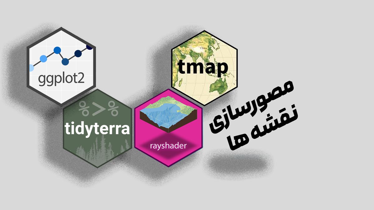 بسته ggplot2 که توسط Hadley Wickham توسعه یافته، بر اساس گرامر گرافیک طراحی شده و رویکردی لایهای و منطقی برای تولید نمودارها و نقشهها ارائه میدهد. این بسته امکان تولید نقشههای استاتیک با کیفیت بالا و قابلیت سفارشیسازی گسترده را فراهم میکند. بسته tidyterra به عنوان پلی میان اکوسیستم tidyverse و دادههای رستری عمل کرده و کار با دادههای رستری را تسهیل میکند.