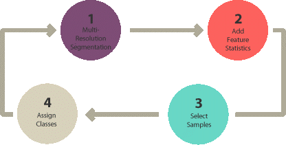 زمانی که از رهیافت شئ گرا برای پردازش و آنالیز تصاویر ماهواره ای استفاده می شود، به معنای آن است که بیشتر از اینکه بخواهیم فرایند پردازش تصاویر ماهواره ای را بر مبنای فضای پیکسل های تصویر انجام دهیم، آن را بر اساس آبجکت هایی انجام خواهیم داد که بر اساس خصیصه ها و یا ویژگی های مکانی یا طیفی شناسایی شده اند. در همین راستا از این آبجکت ها و مجموعه پیکسل های دسته بندی شده معمولا در زمینه طبقه بندی تصاویر ماهواره ای مورد استفاده قرار می گیرد.